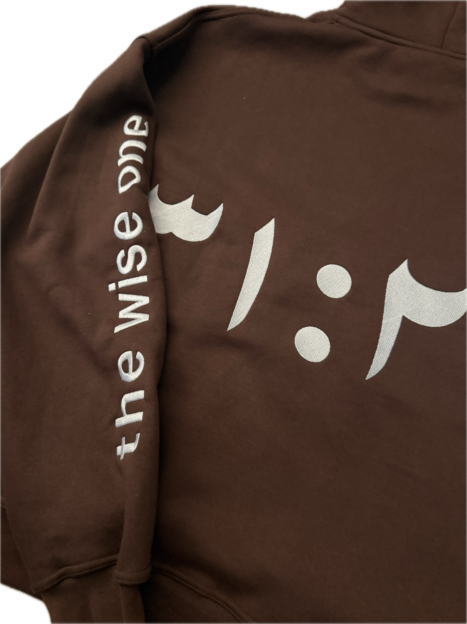 The Hakeem Signature Hoodie is a baggy hoodie that blends cultural identity with clean, minimal design. "Hakeem" is displayed in Arabic on the front, with the English spelling across the top of the hood. On the left sleeve, it reads "The Wise One", while the back features a Qur'anic ayah, adding a layer of meaning and reflection. Loose-fitting and intentional, this hoodie is built for comfort, presence, and quiet impact.
